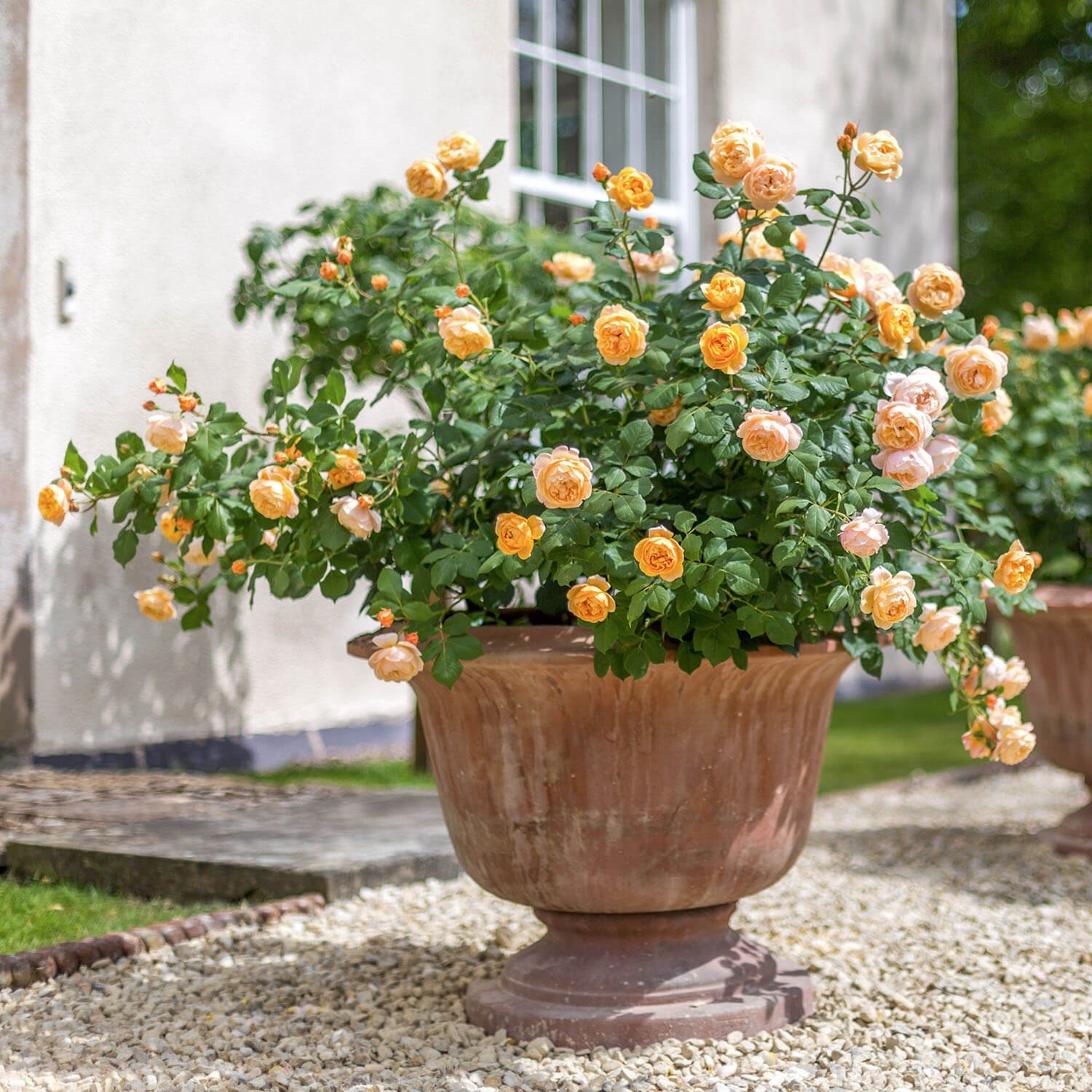 Окраска цветков интересная – матовая персиково-абрикосовая. Бутоны красно-оранжевые, по мере роспуска цветы светлеют до персикового. Старые цветки становятся еще более светлыми, но большого контраста нет. Куст в цвету будет выглядеть достаточно ровным. Есть фруктово-чайный аромат средней силы.